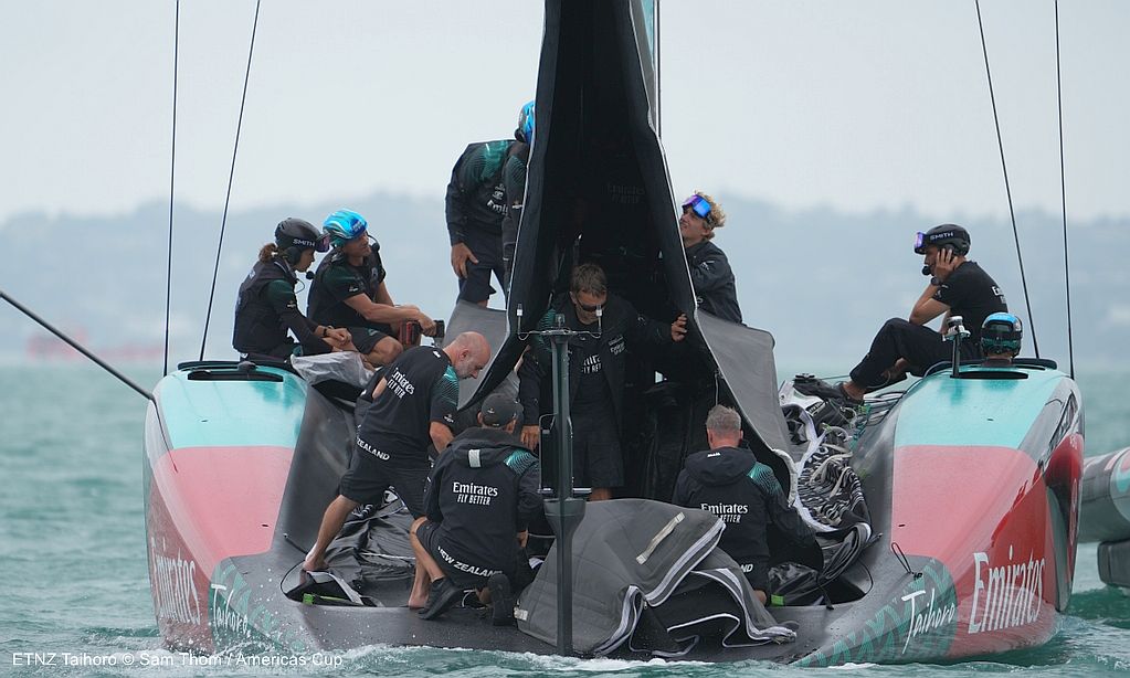 Zespół Emirates Team New Zealand odbył lot na swoim zmienionym Taihoro, pierwszym żaglu objętym nadzorem RECON zgodnie z wymogami protokołu AC38.