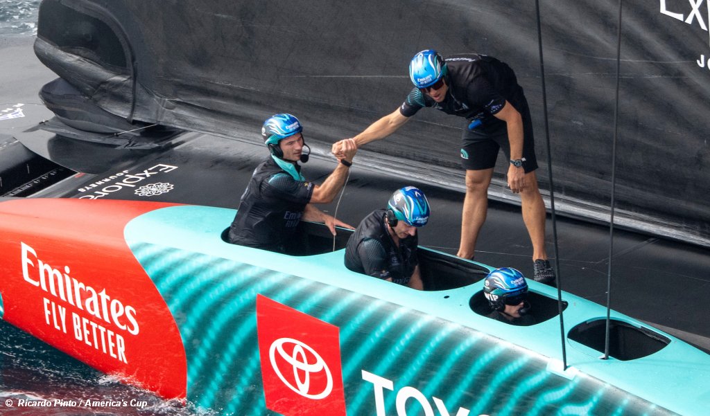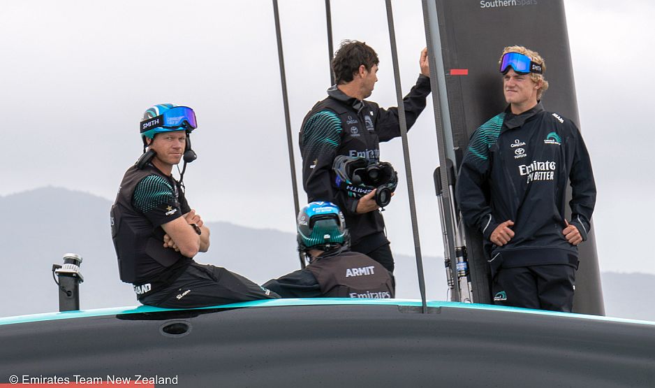 Kapitan Nathan Outteridge i Seb Menzies dzielili się obowiązkami sternika, odpowiednio na prawej i lewej burcie, a Blair Tuke, Iain Jensen i Josh Armit zmieniali stanowiska kontroli lotu.